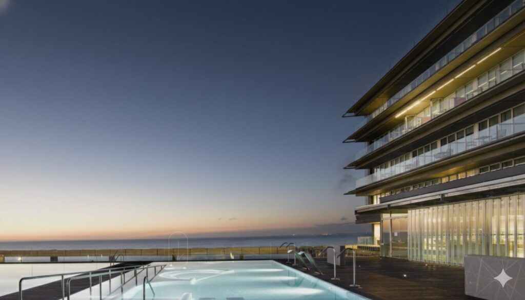 | 外観の魅力 | 以前の建物を建て替え、2012年にオープンした斬新で現代的なデザイン。海に面した大きな窓とテラス、波のような曲線を取り入れた開放的な外観が特徴的です。 |