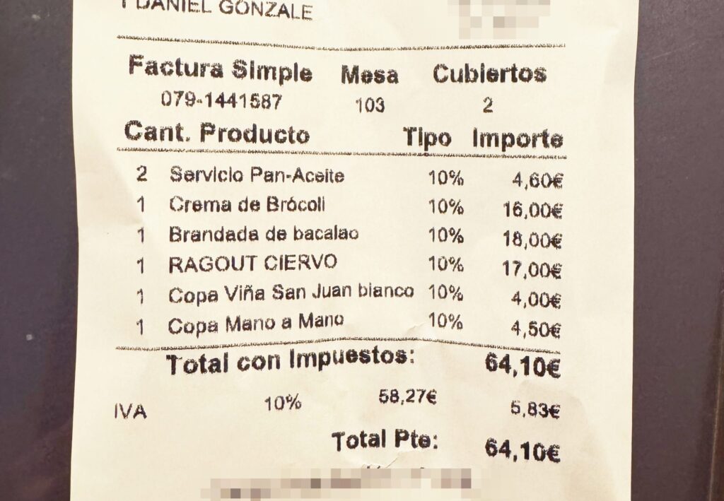 【↑画像】注文したレシート2名分です。どれも美味しくてお腹いっぱいになりました。