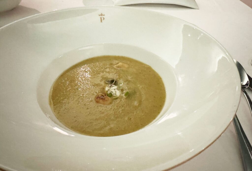 右:ブロッコリーのスープです。濃厚なブロッコリー味で、とても美味しかったです。