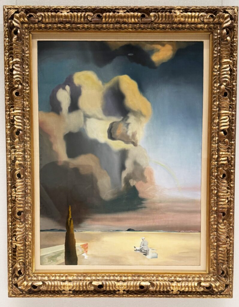 解説: ダリの初期作品に不安定な岩や雲がよく描かれている。この形が「幽霊」や「幻影」というタイトルの核心であり、生物のようにも、崩れかけた地形のようにも見える。